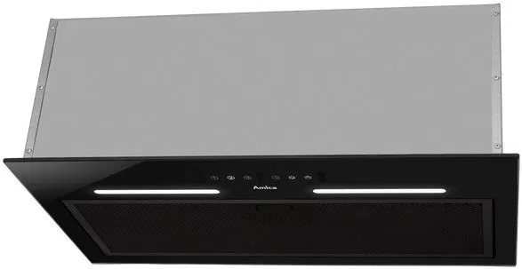 Digestoř - s recirkulací i odtahem, vestavná, pevná, do skříňky, šířka 55 cm, energetická třída C, hlučnost 63 dB, 3stupňový výkon 508,2 m³/h, zpětná klapka, LED osvětlení, dotykové ovládání, bezdotykové ovládání, tukový filtr, vhodná do velké kuchyně (do 30 m²), umístění vývodu z vrchu, průměr horního vývodu 15 cm, černá barva, hmotnost 7,8 kg