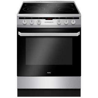 AMICA SSA 6110 OCX Sklokeramický sporák, 60 cm, A, 65 l, 10 programů vč. grilu a horkovzduchu, displej, super rychlý ohřev, trojité sklo, otočný rožeň, katalýza, boční drátěné lišty, 2x plech, nerez