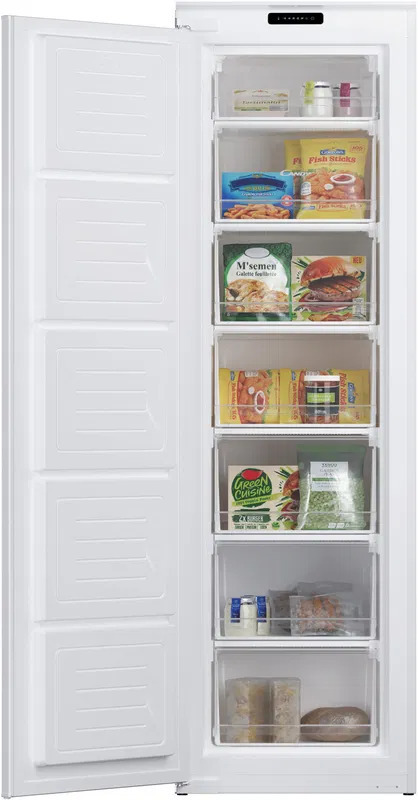 Vestavný mrazák - energetická třída E, objem 204 l, klimatická třída ST, žádná barva, rozměry 176,9 × 57,3 × 54 cm (V׊×H), čelní dekorativní panel na dvířkách není součástí dodávky