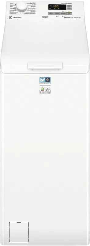 Parní pračka - s vrchním plněním, energetická třída A, kapacita pračky 6 kg, váž. spotřeba energie 42 kWh/100 cyklů, váž. spotřeba vody na cyklus 43 l, váhová automatika, odložený start, rychlý program, displej a dětská pojistka, SensiCare, 1300 ot/min při odstřeďování, rozměry 40 × 89 × 60 cm (Š×V×H)