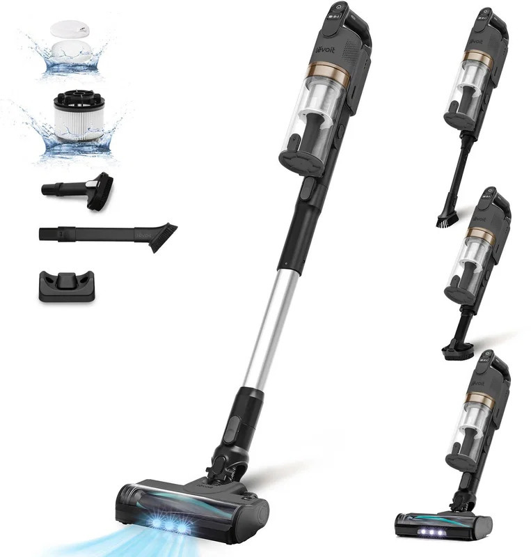 Tyčový vysavač - 4v1, bezsáčkový, aku, na všechny druhy podlah, na Li-ion baterie, doba provozu 50 min, doba nabíjení 5 h, LED kontrolky stavu nabití baterie, LED osvětlení a světelné kontrolky, typ motoru BLDC, příkon 180 W, hlučnost 73 dB, plastová sběrná nádoba o objemu 0,75 l, ovládání na těle, s teleskopickou trubicí, rozměry 110 × 25 × 19,5 cm (V׊×H), hmotnost 1,45 kg, černá a stříbrná barva