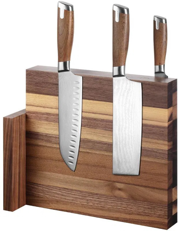 Stojan na nože - dřevěný, magnetický, na 10 nožů, hnědá barva