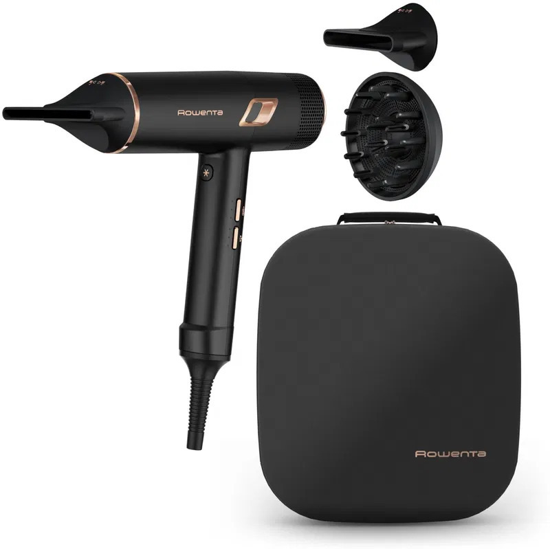 Fén na vlasy příkon 2000W, BLDC motor, 9 kombinací rychlosti/teploty (3 teplotní stupně a 3 rychlosti), studený vzduch, ionizátor, technologie Air-To-Care pro styl a lesk, ergonomická rukojeť, odnímatelná zadní mřížka, lehký (385 g), balení obsahuje 5mm koncentrátor, 9mm koncentrátor, difuzér a toaletní pouzdro, barva černá, 15ti letá záruka opravitelnosti