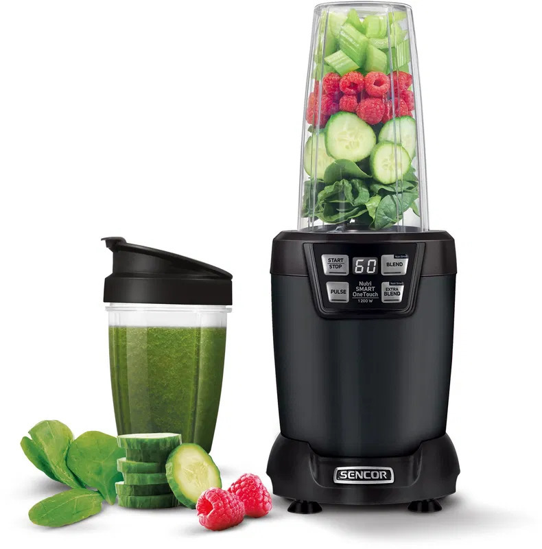 Stolní mixér - příkon 1200 W, pulzní funkce a přednastavené programy, vhodné na smoothie, pyré a drcení ledu, přenosná láhev součástí, 2 nádoby v balení, objem mixovací nádoby 1 l, materiál nádoby tritan