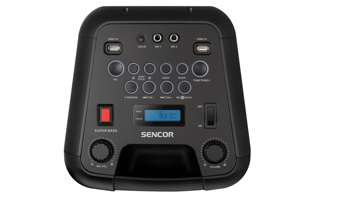 Bluetooth reproduktor - aktivní, o výkonu 60W, frekvenční rozsah od 40 Hz do 15000 Hz, 3,5mm jack, 6,3mm jack, Bluetooth, mikrofon, rádio, displej, výdrž baterie 10 h