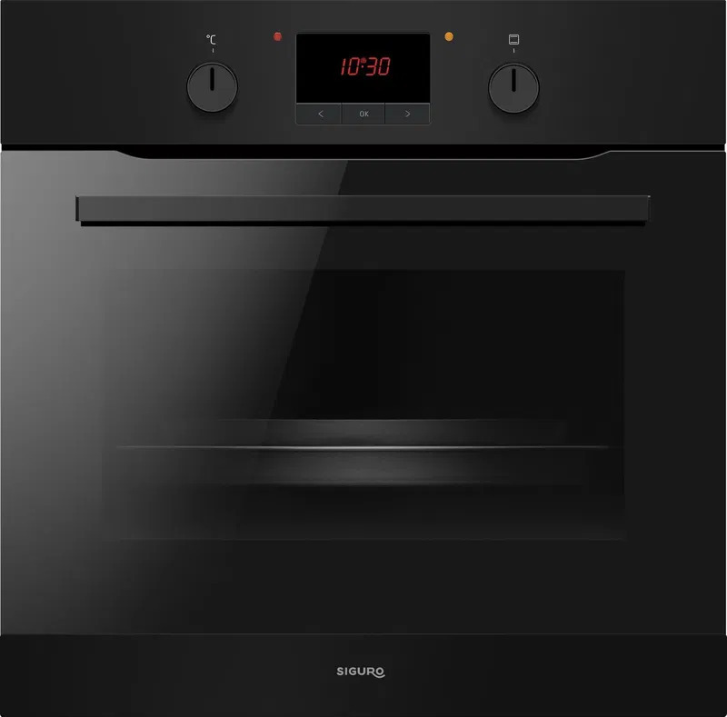Vestavná trouba energetická třída A, objem 65 l, funkce rychlého předehřátí, gril, horní ohřev, rozmrazování, spodní ohřev, stupeň na pizzu, ventilátor a statické pečení, čištění trouby vodou, 3vrstvé sklo dvířek, časovač, displej, ochlazovací systém, studené dveře trouby, termostat a vnitřní osvětlení, V׊×H 59,5 × 59,5 × 57 cm