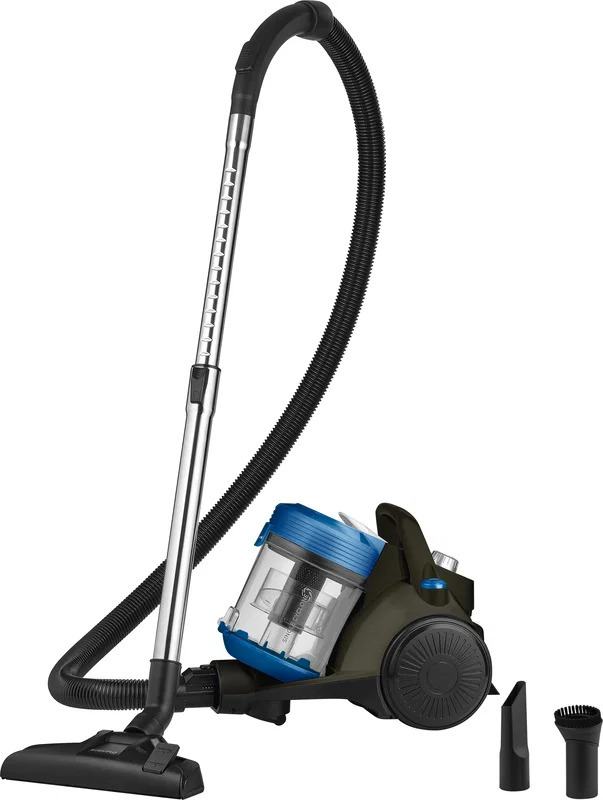 Bezsáčkový vysavač - příkon 700 W, sací výkon 110 AW, max. hlučnost 80 dB, pěnový filtr, HEPA filtr H12 a omyvatelný filtr, objem nádobky na prach 2,5 l, displej, hlavní kartáč, štěrbinová hubice a malý kulatý kartáč, na suché čištění, pro všechny druhy podlah i pro interiér auta, délka kabelu 5 m, rozměry 305 × 247 × 363 mm, hmotnost 3,6 kg