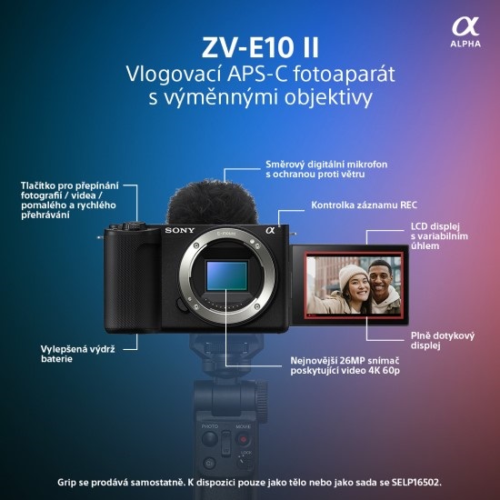 Sony ZV-E10 II pořídí kvalitní fotografie a videa ve 4K rozlišení