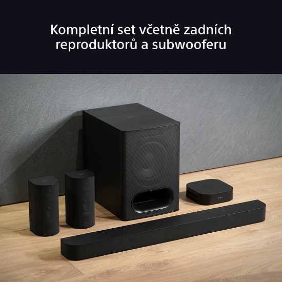 SoundBar - 5.1, o výkonu 1000 W, aktivní bezdrátový subwoofer, HDMI (1× výstup), optické digi audio (výstup), Bluetooth, eARC, Dolby Atmos, Dolby Digital Plus, DTS: X, displej, dálkový ovladač