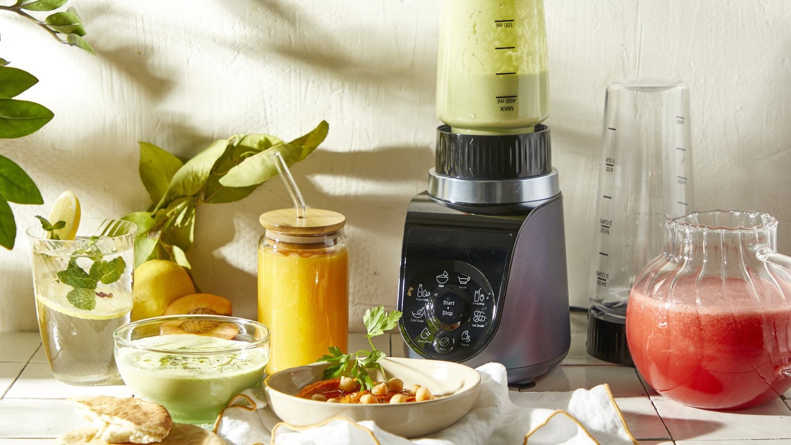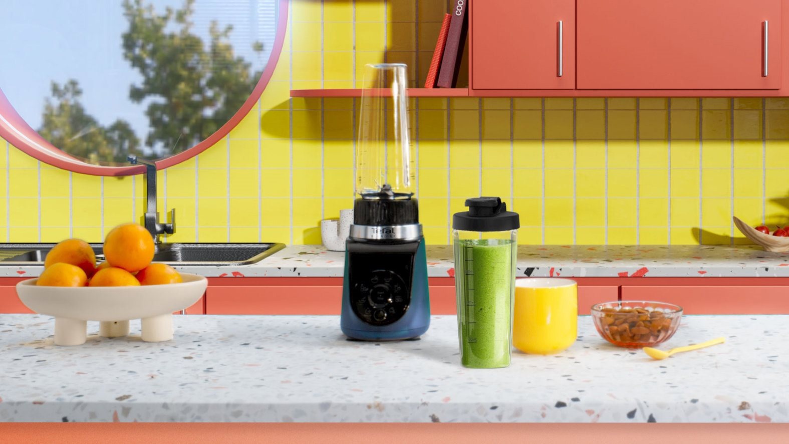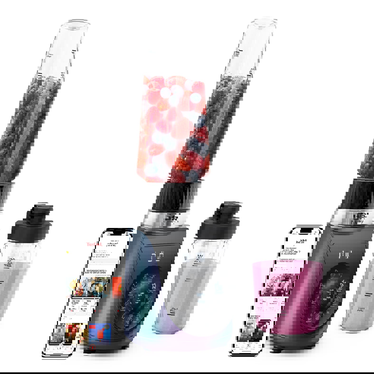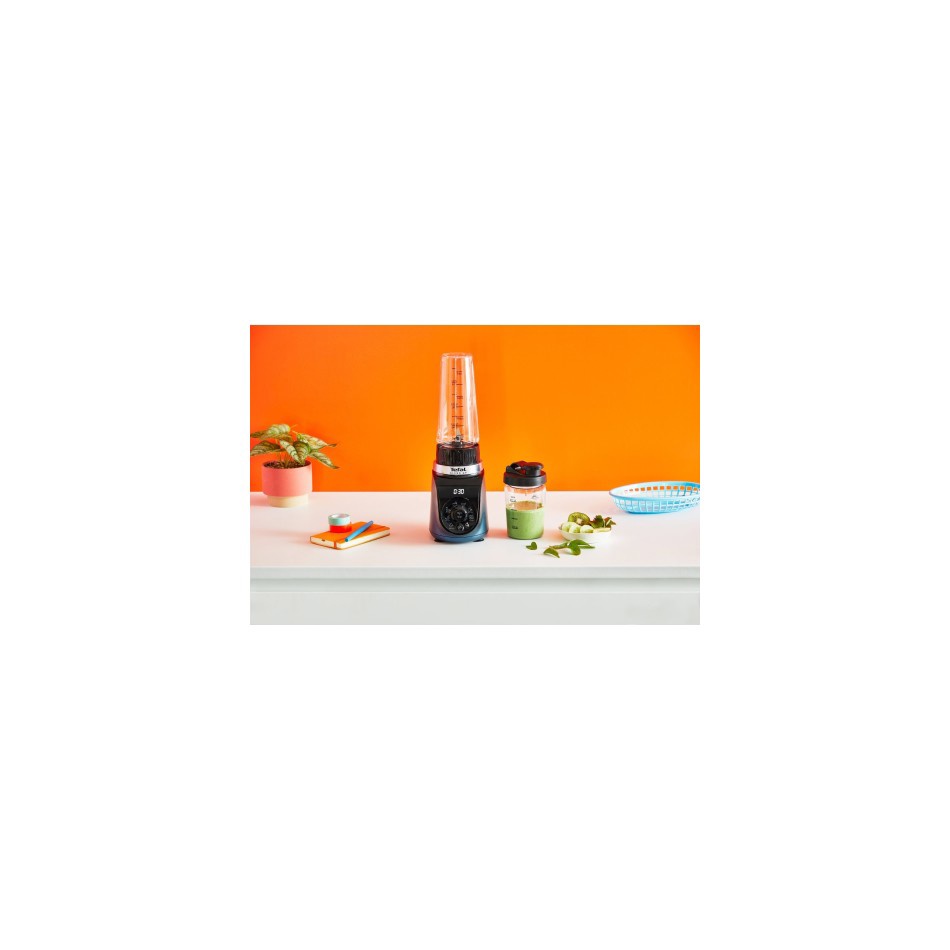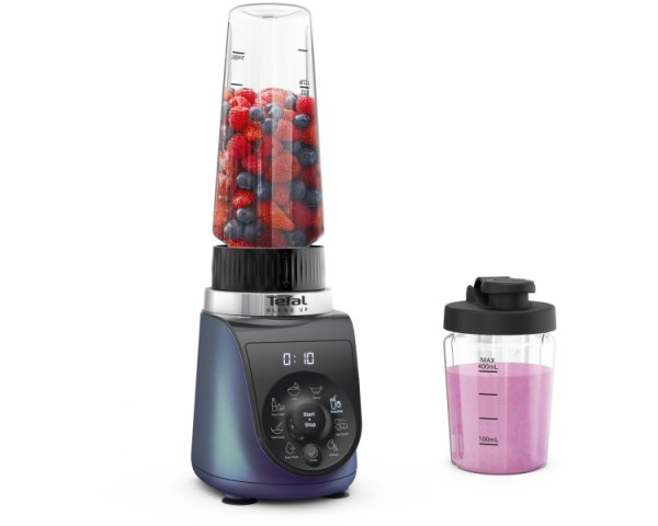 Stolní mixér smoothie mixér, 8 automatických programů, příkon 1000W, rychlost až 24 000 otáček za minutu, celkový objem nádoby 0.85l (užitný 0.7l), čepele Powelix, pro drcení ledu, režim automatického čištění, snadné čištění díky vyjímatelným čepelím a lahvím vhodným do myčky, pulzní funkce, speciální tichý režim, nepropustné cestovní lahve z tritanu bez obsahu BPA, lehká a kompaktní konstrukce, balení obsahuje 2 cestovní láhve (400 ml a 700 ml), mycí kartáček, barva modrá metalická, 15ti letá záruka opravitelno