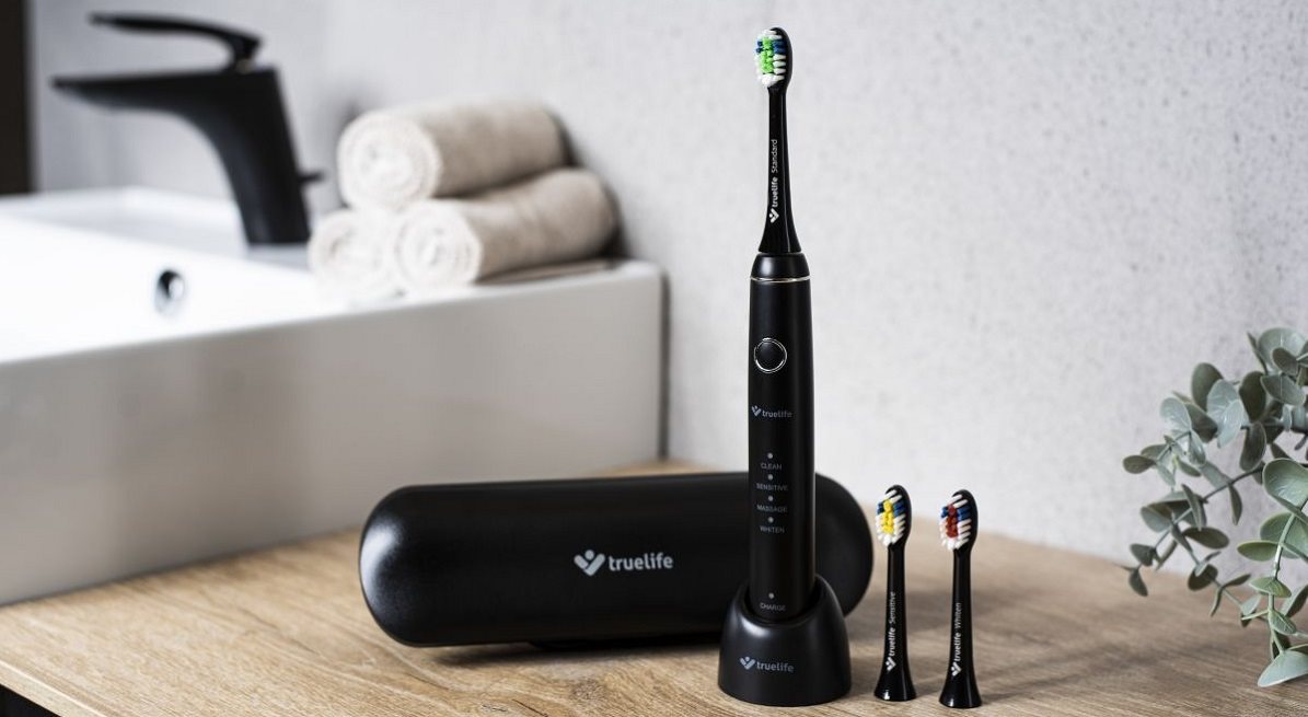 Elektrický zubní kartáček - sonický, 70000 pohybů za minutu, 4 režimy, časovač, indikátor baterie a smart funkce, v balení 3 hlavice, cestovní pouzdro